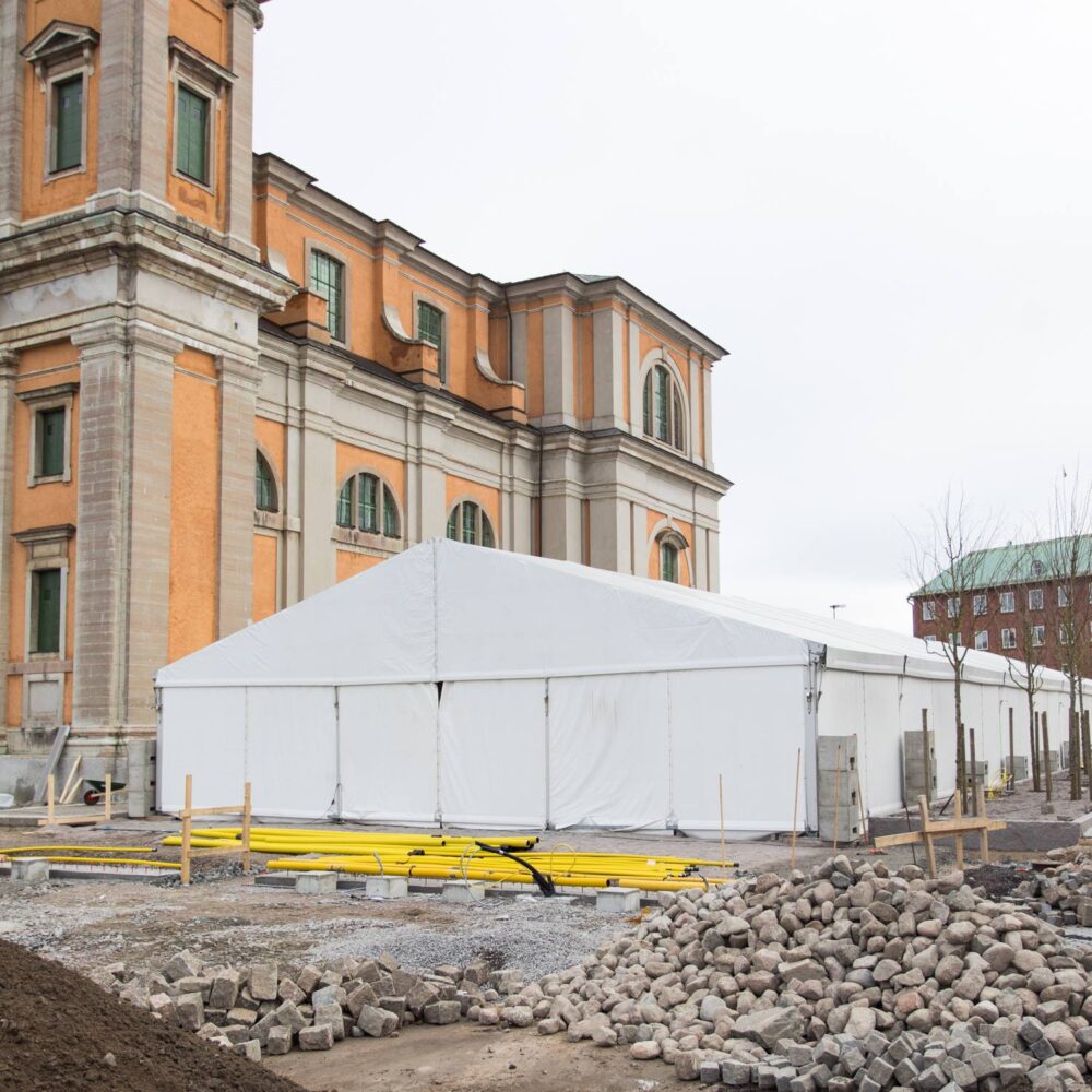 Vi på Leijon Construction erbjuder en helhetslösning för transport, montering, nedmontering och tvättning av stora tält för industrier och andra organisationer.